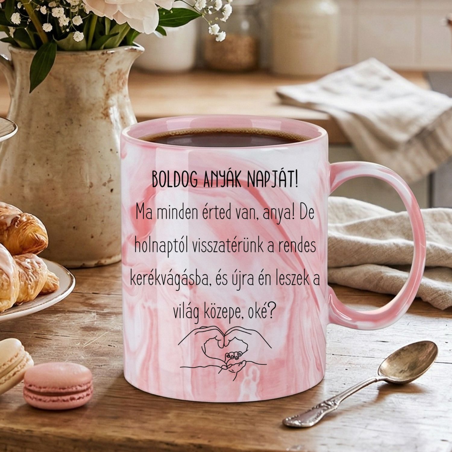 Prémium márvány bögre: Egyedi, rózsaszín mintázat, ami minden darabot különlegessé tesz. Ez a stílusos anyák napi ajándék márvány bögre az ünnepi asztal dísze lesz.