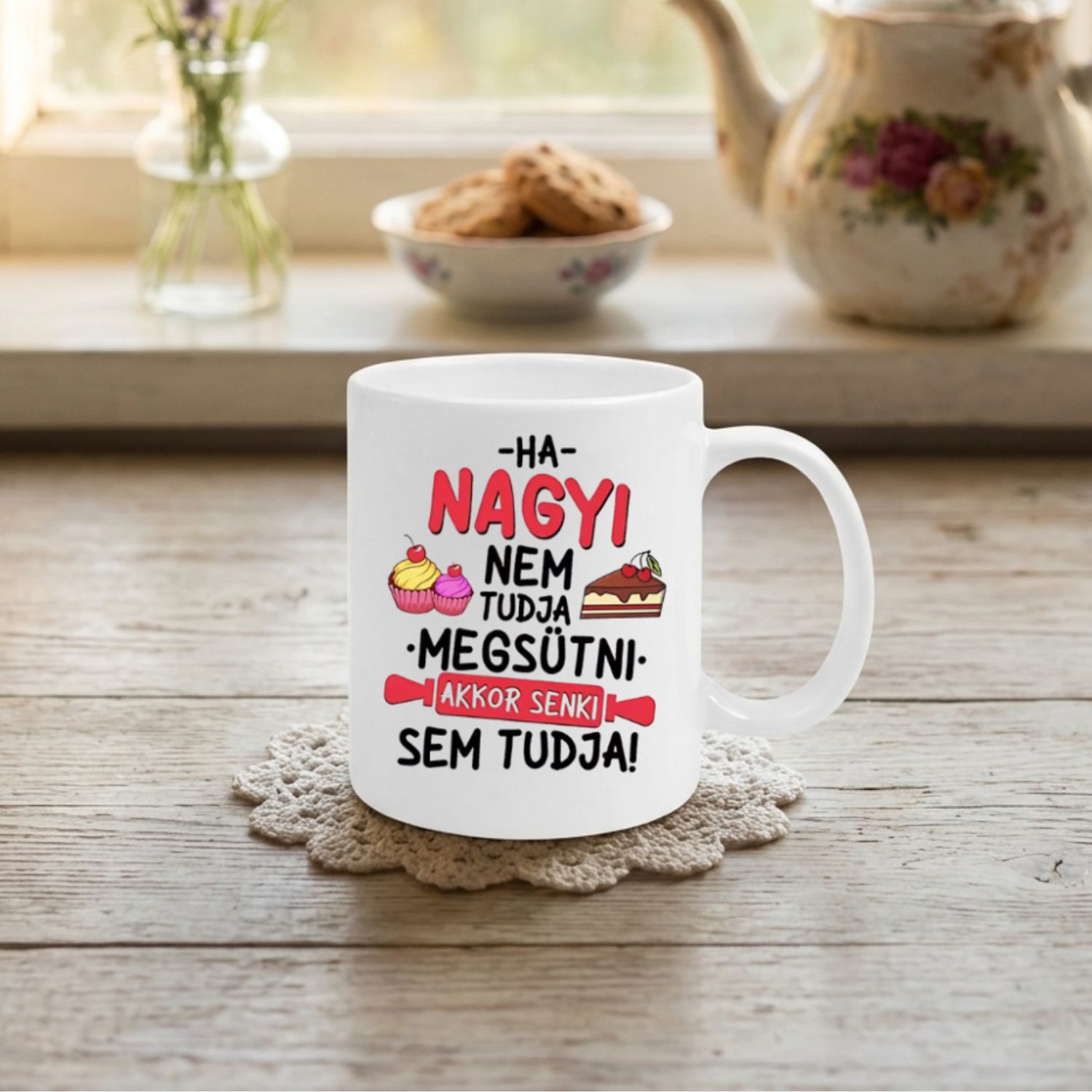 Ez a minta a nagymama konyhájának és szeretetének a jelképe. Ha egy olyan egyedi ajándék nagymamának süti feliratos tárgyat keresel, ami minden nap mosolyt csal az arcára, nálunk a legjobb helyen jársz.